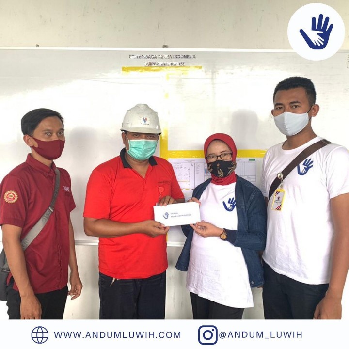 Tim #AndumLuwih memberikan bantuan pendidikan kepada salah satu keluarga karyawan unorganik PT KMJ di daerah Kertosono